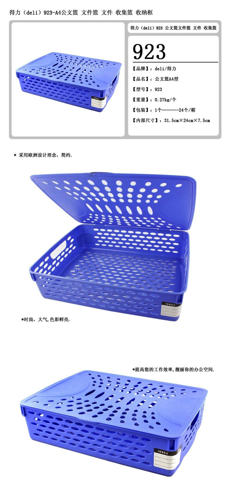 品名:得力(deli) 公文篮 923 343×258×82mm 带盖