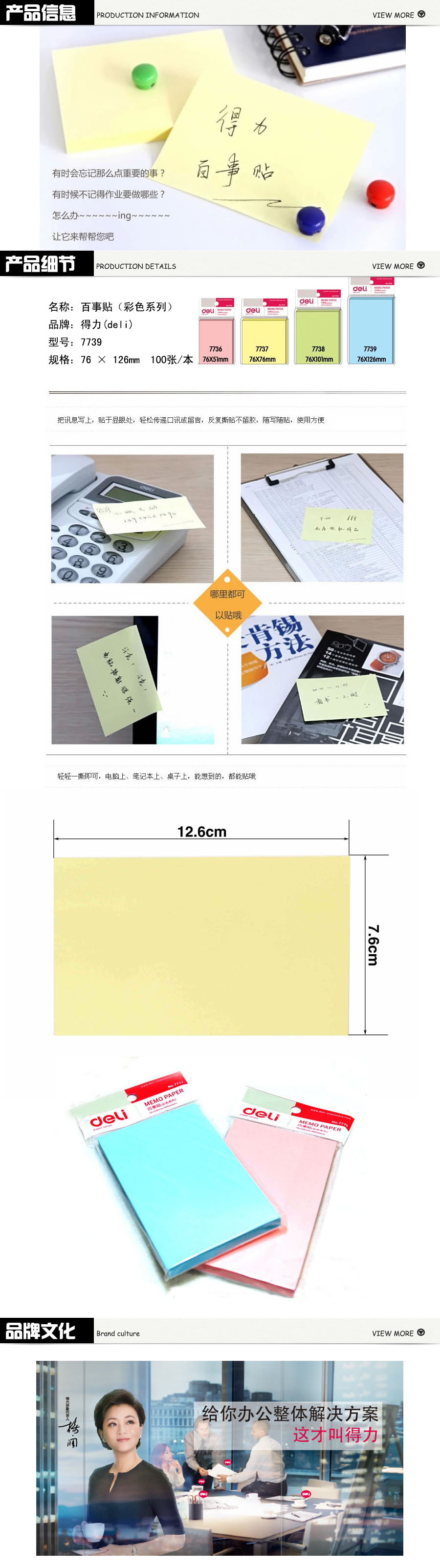 品名:得力(deli) 百事贴(彩色系列) 7739 76 × 126mm 100张/本
