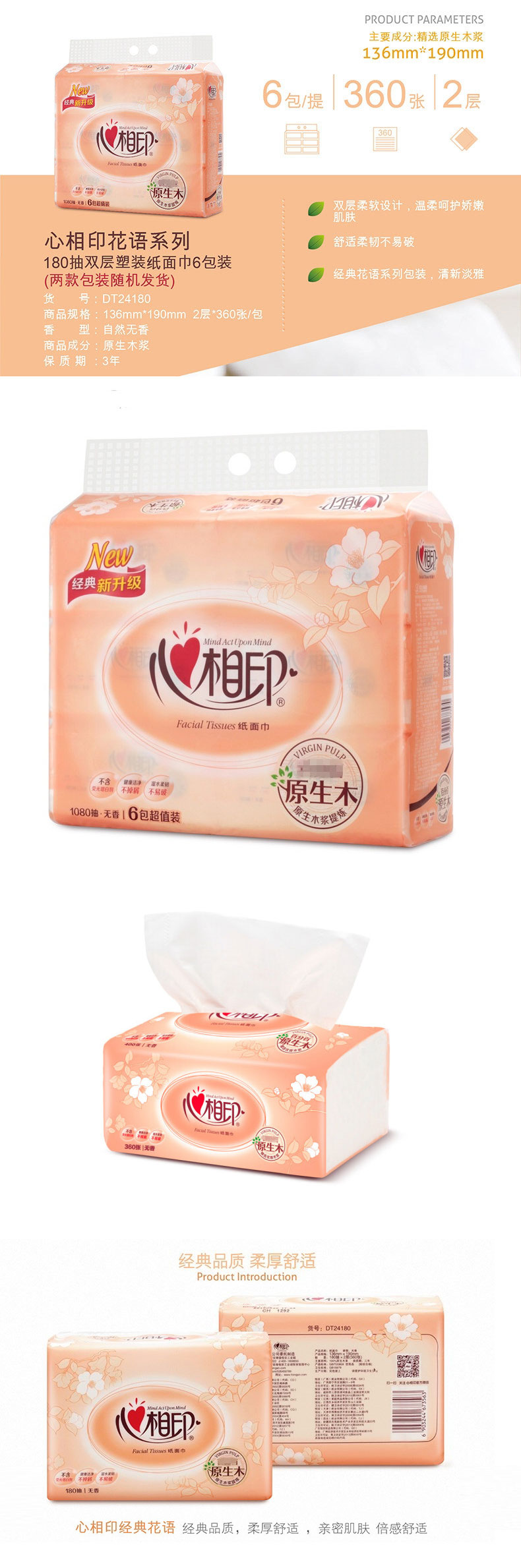 品名:心相印 抽纸 DT24180 2层 180抽 6包/提