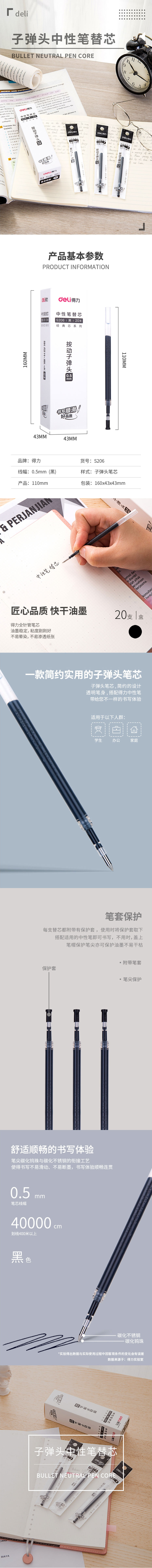 品名:得力(deli) 笔芯 S206 0.5mm 黑色