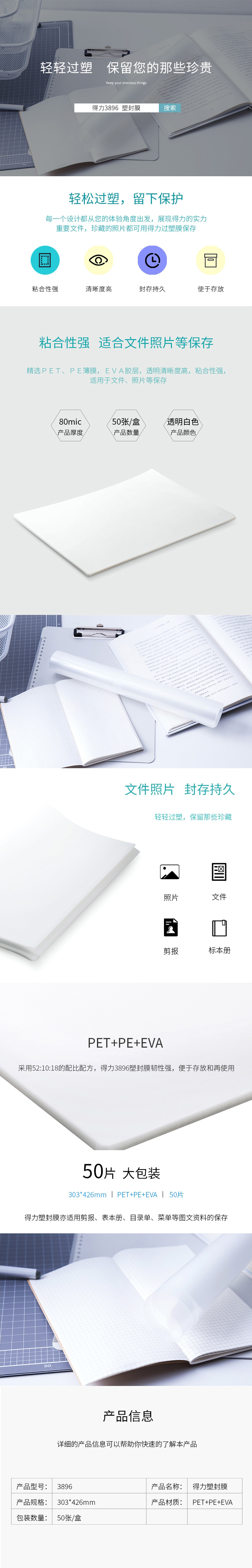 品名:得力(deli) 护卡膜 3896 A3 50只/包