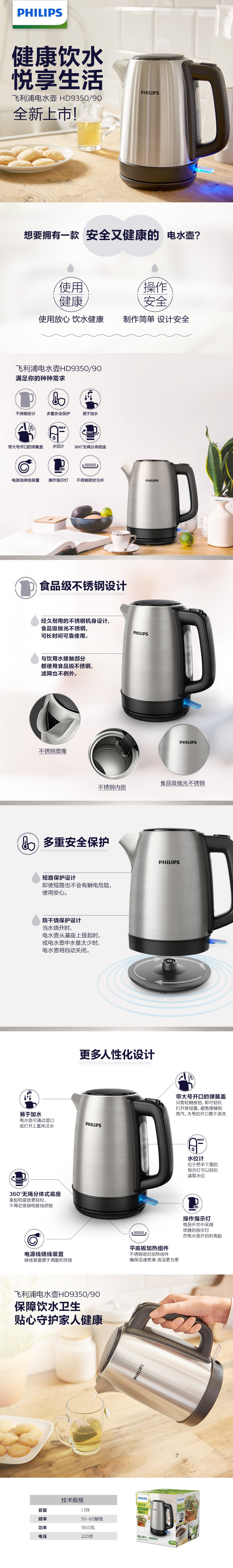 品名:飞利浦(PHILIPS) 电热水壶 HD9350 食品级不锈钢 1.7L