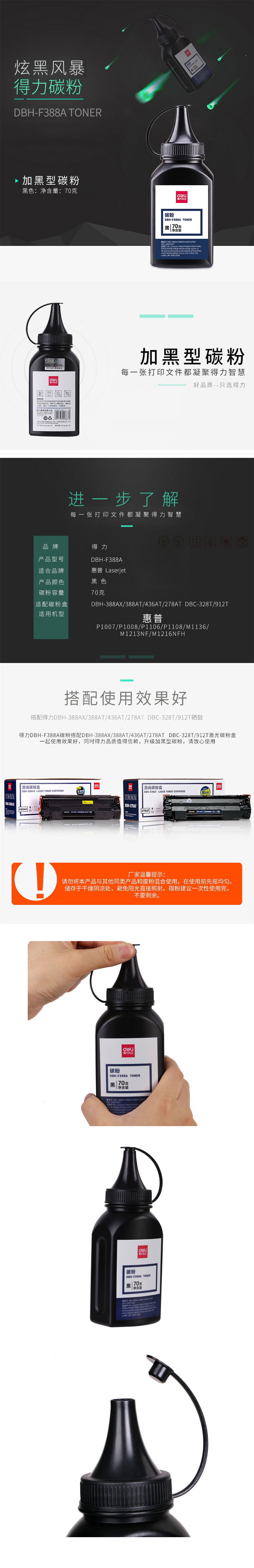 品名:得力(deli) 碳粉 DBH-F388A (惠普HP P1007/P1008/P1106/P1108/M1136/M1213...