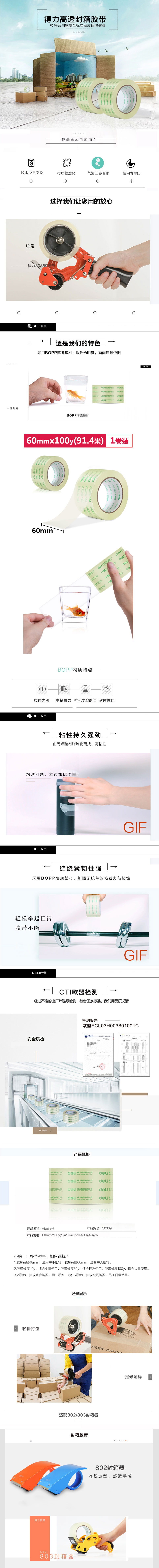 品名:得力(deli) 封箱胶 30369 高品质 高透明 60mm*100y*50um