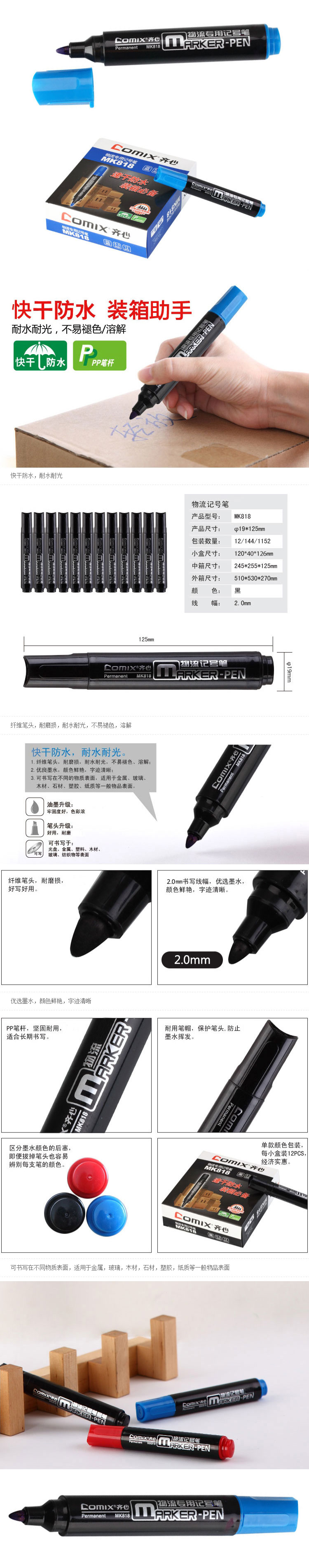 品名:齐心(Comix) 记号笔 MK818 粗头 油性 蓝色