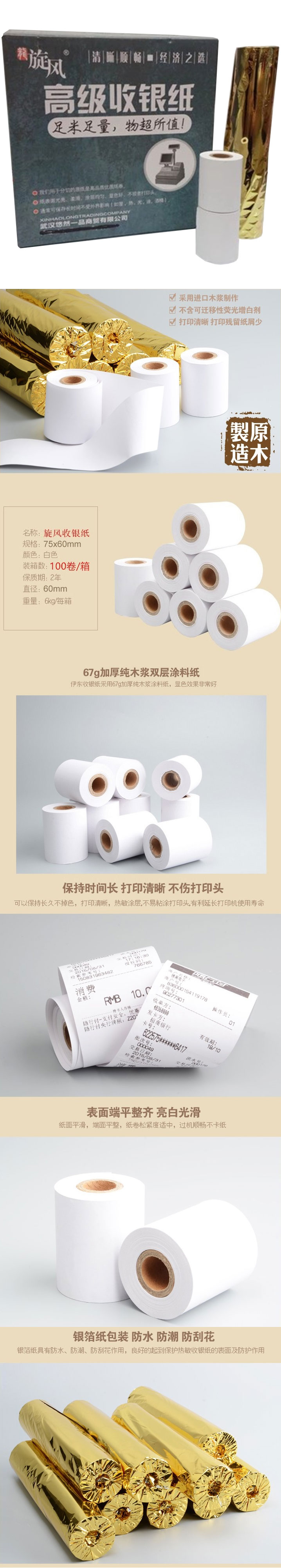 品名:旋风 收银纸 75*60Φ 100卷/箱
