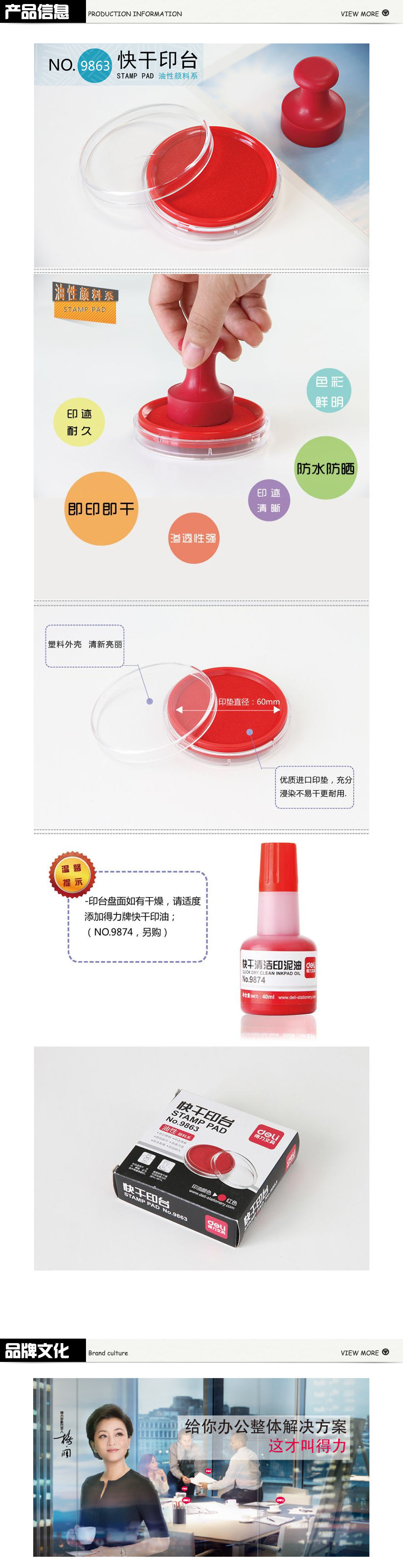 品名:得力(deli) 快干印台 9863 直径7cm 红