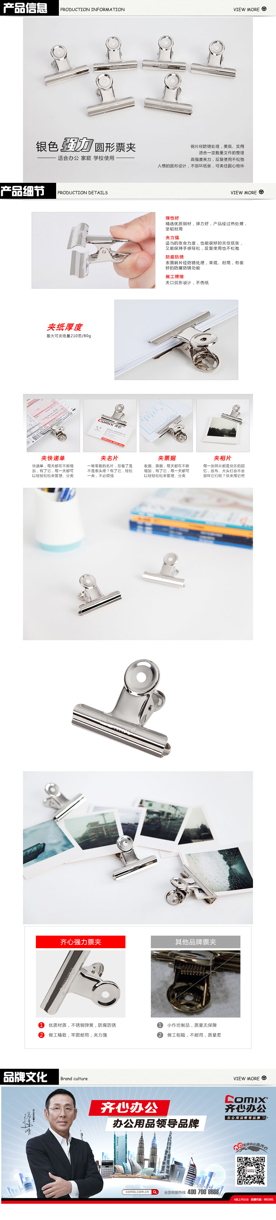 齐心(Comix) 圆形票据夹 B3612 64mm 6只装